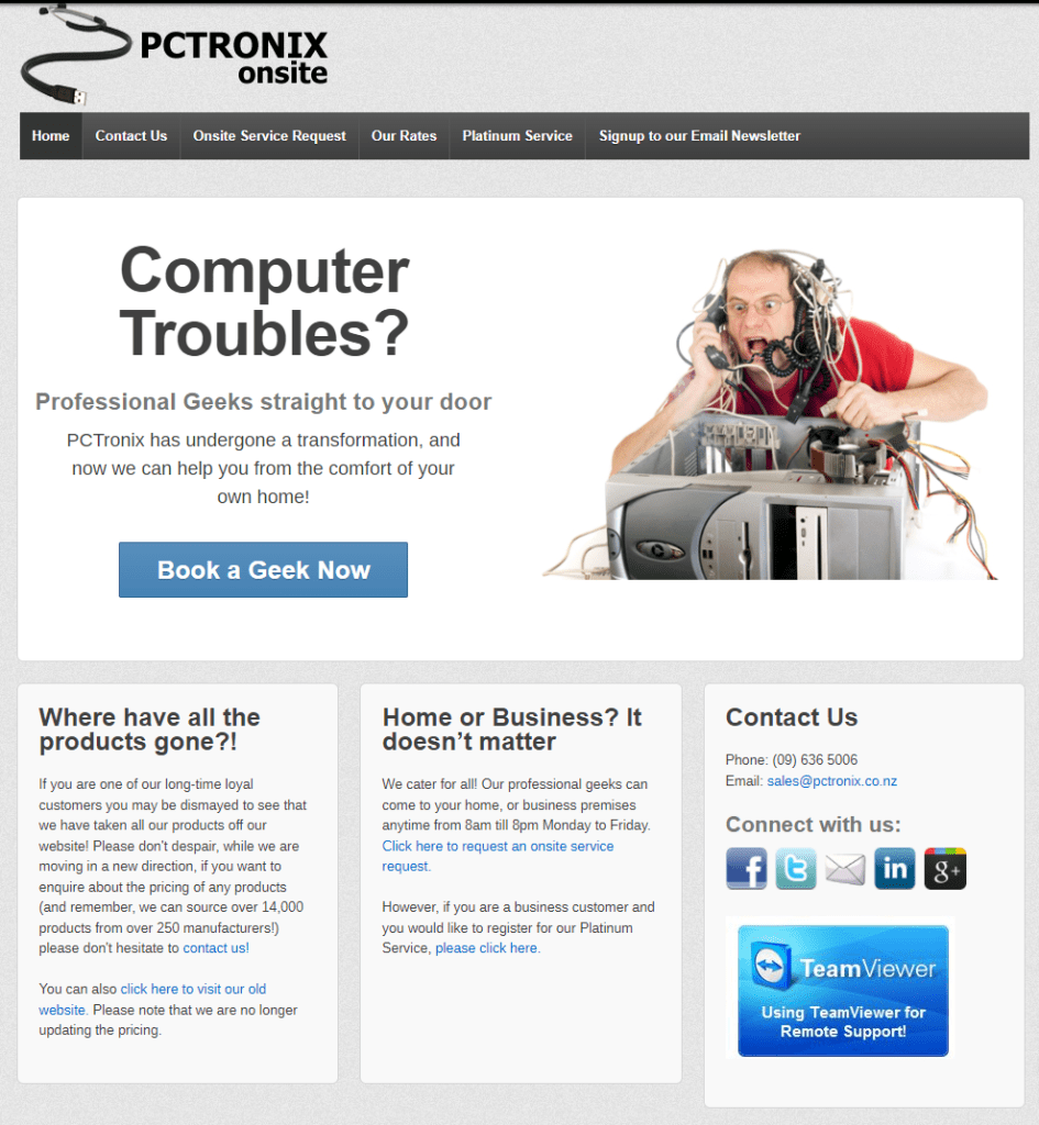 In 2012, as the company pivoted away from selling computer hardware to concentrate on managed services (what they do, to this day) The site was updated to a WordPress theme with the information presented in a much more static brochure-style site.