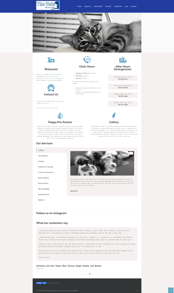 The Vets on Manukau Road have been an established veterinarian clinic for many years. We chose them to be our vet when we had our beloved puppies (here and here) and so when they first mentioned that they wanted to re-look at their website, I thought I’d give them a helping hand!